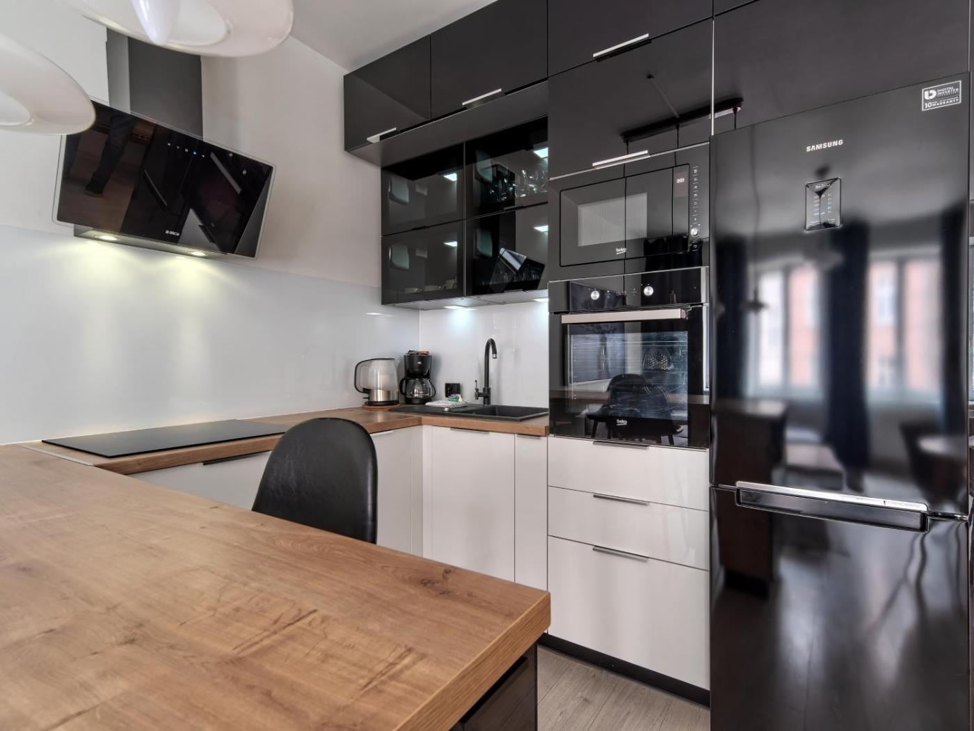 Apartament z 2 sypialniami. This spacious apartment is comprised of 1 living room, 2 separate bedrooms and 1 bathroom with a shower and free toiletries. The well-fitted kitchen features a stovetop, a refrigerator, a dishwasher and kitchenware. The apartment offers a flat-screen TV with streaming services, a washing machine, a private entrance, a minibar as well as ancourtyard view. The unit offers 2 beds. Apartament - 4 osobowy. Powierzchnia pokoju ok.: 65 mkw.