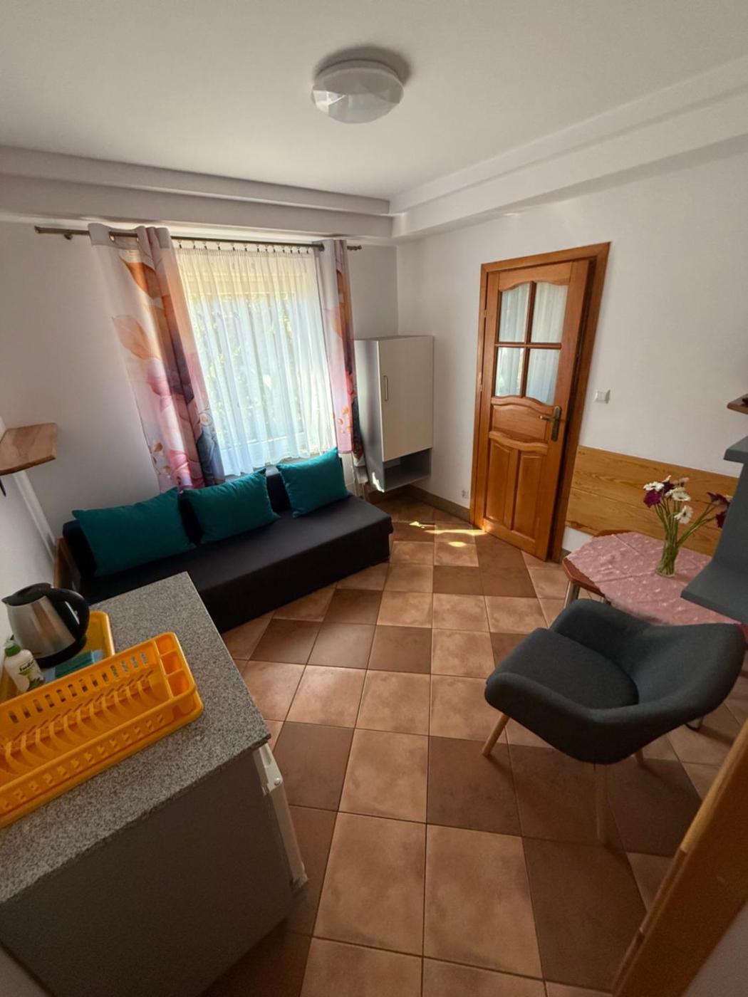 Pokój Czteroosobowy. Guests will find a stovetop, a refrigerator, kitchenware and an electric kettle in the kitchen. The quadruple room also provides guests with a barbecue. Featuring a terrace with garden views, this quadruple room also provides a dining area and a flat-screen TV. The unit offers 3 beds. Pokój Czteroosobowy - 4 osobowy. Powierzchnia pokoju ok.: 25 mkw. ;